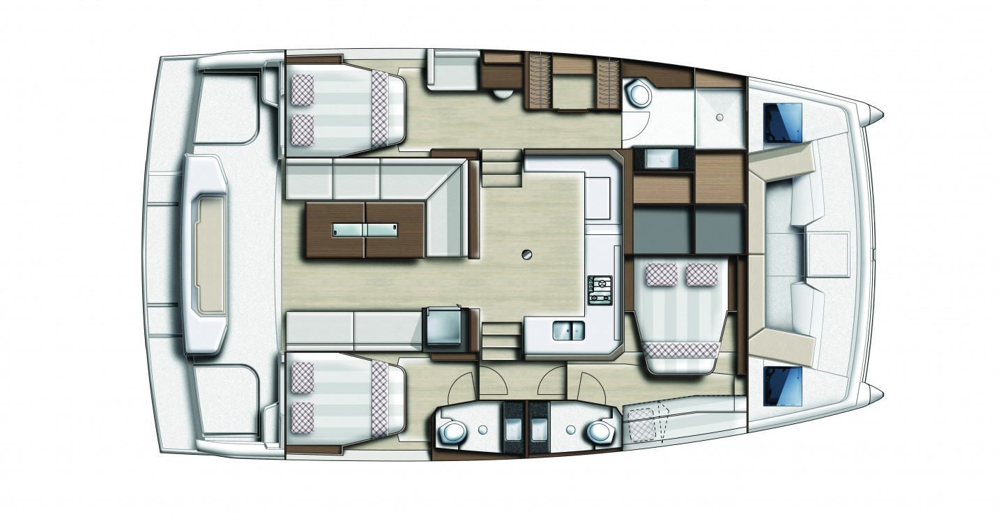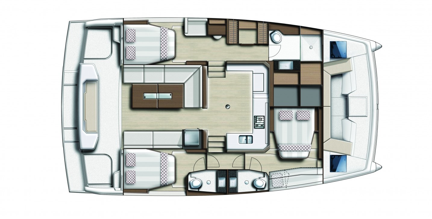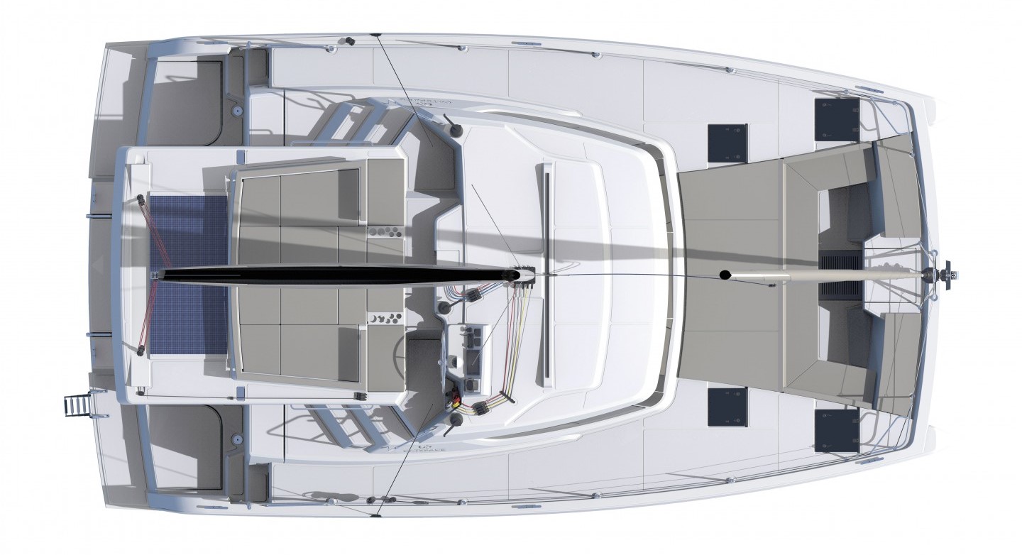 The integral deck, efficient for sailing, allows you to move smooth around the various spaces, from the aft platform with bench seat to the forward cockpit with lounge and sunbathing area. The full-comfort flybridge is home to an immense and safe relaxation area as well as the helm station designed for single-handed or short-handed use… not to mention the performance and quality that make the Catana group’s range so successful.